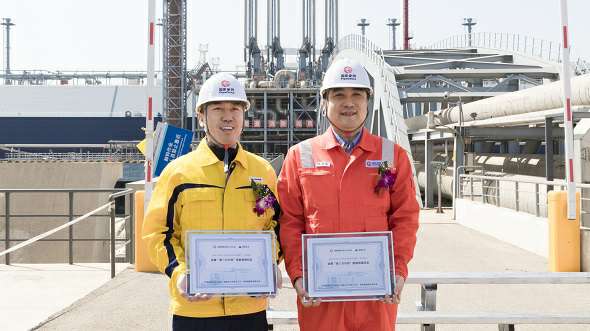 Bwin·必赢(中国)唯一官方网站 和国家管网天津接收站共同举行了Bwin·必赢(中国)唯一官方网站 首船LNG接卸和首车发车仪式。国家管网天津接收站总经理张林松和Bwin·必赢(中国)唯一官方网站 智能贸易及输配业务群副总经理尹明分别代表双方互换纪念铭牌。